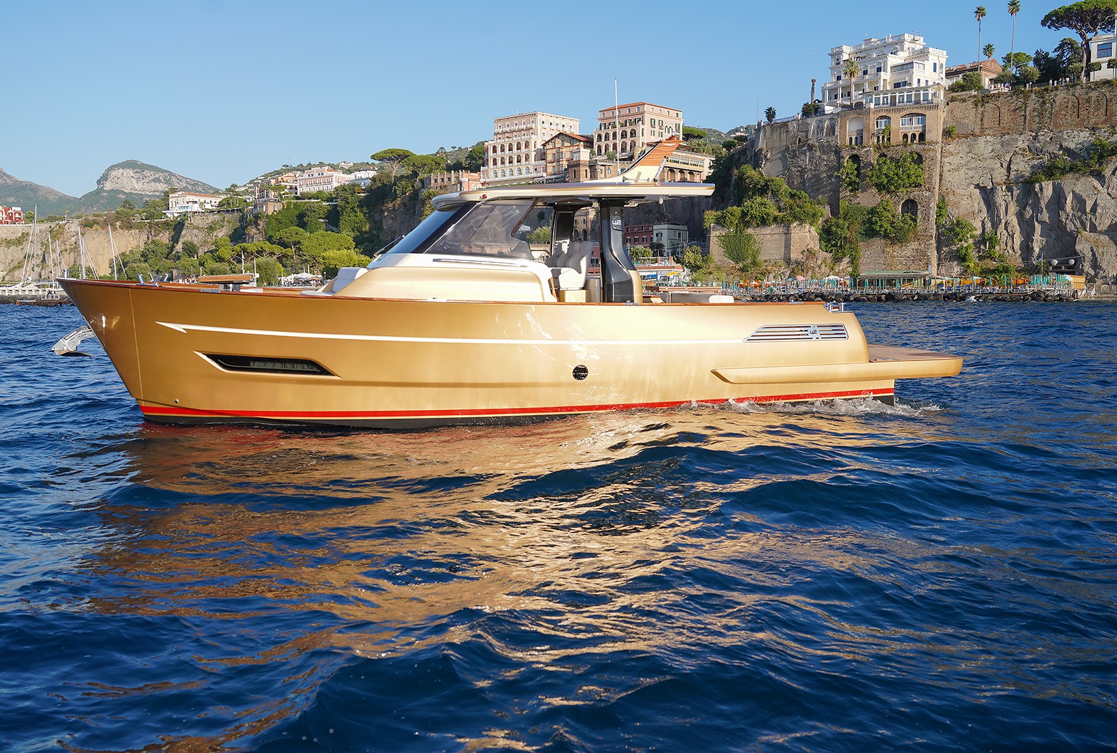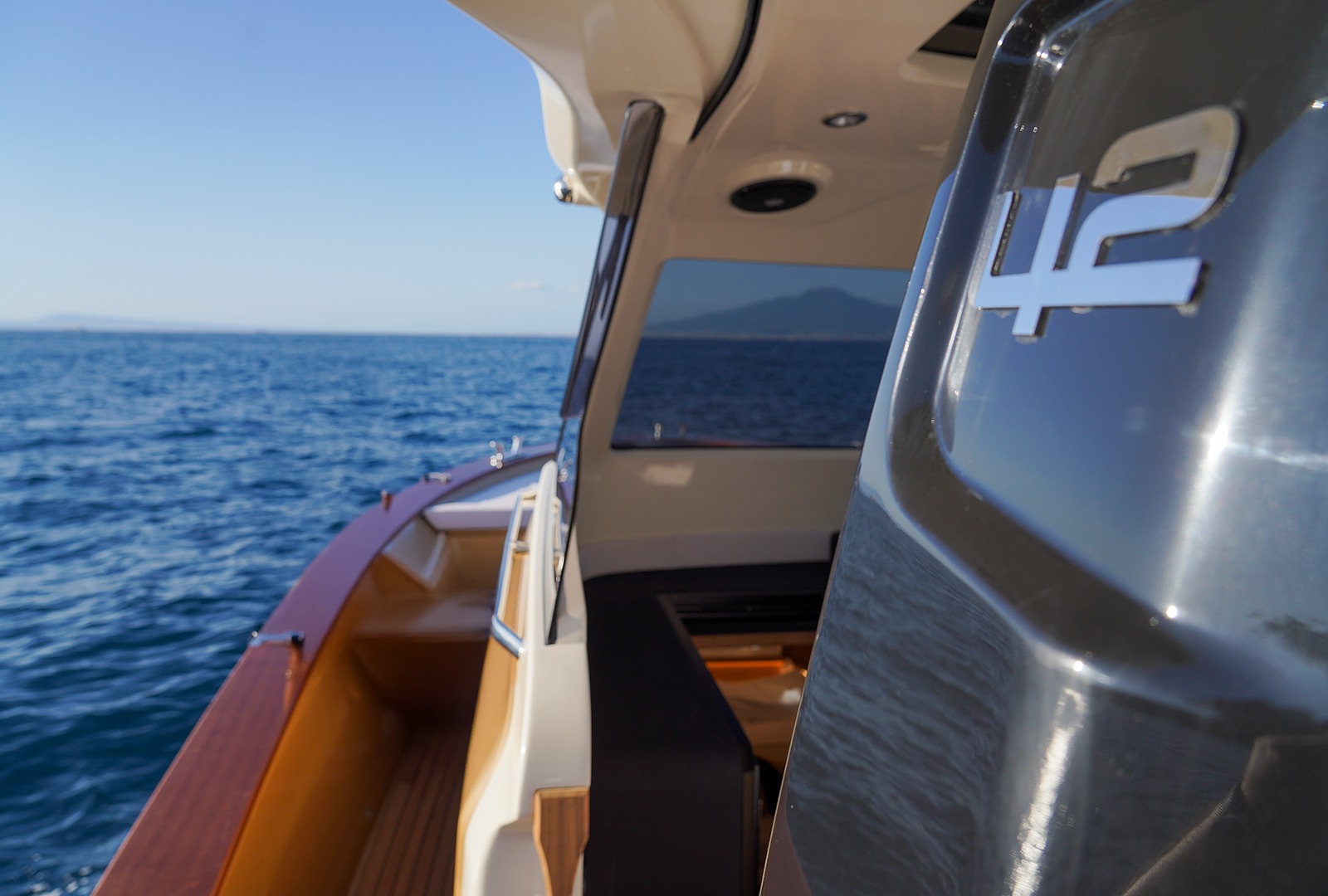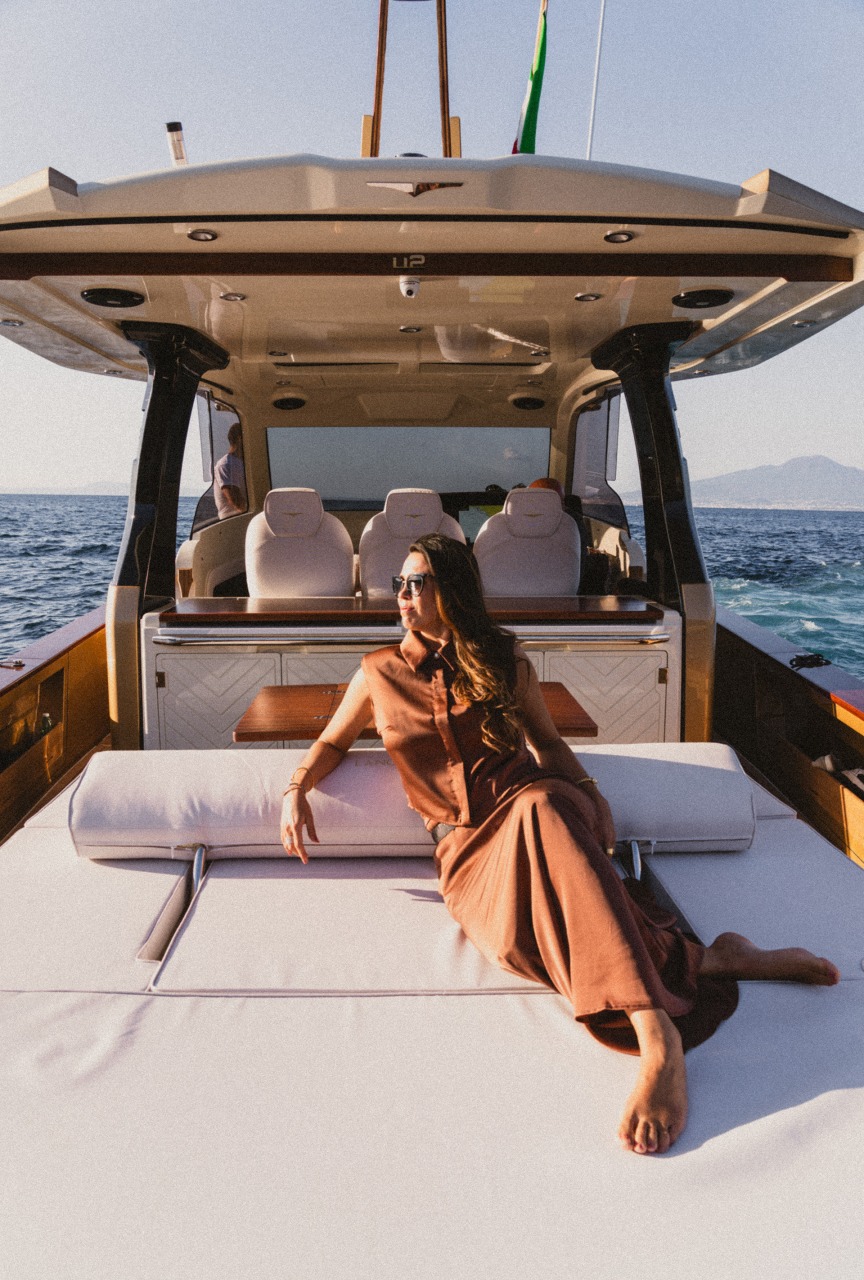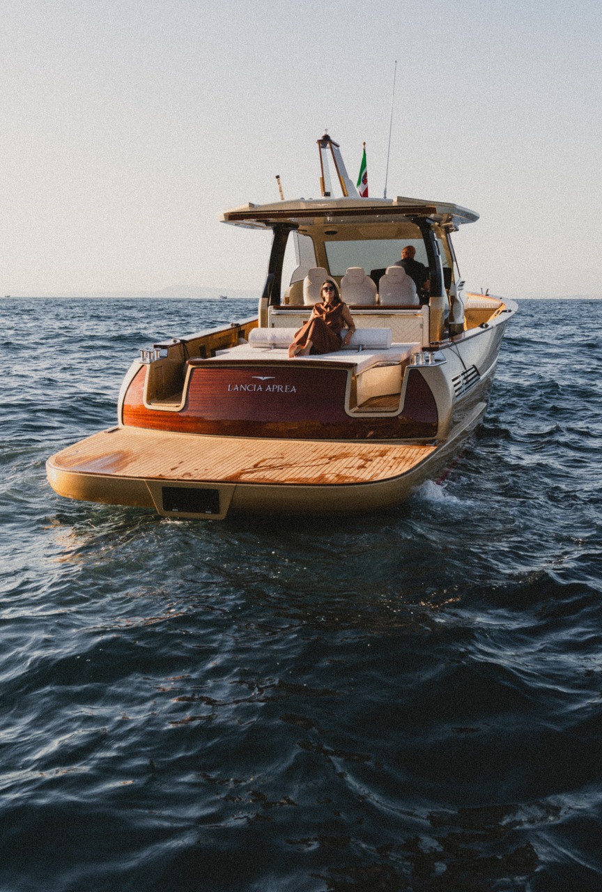 Lancia Aprea 42 is a luxury yacht with a modern and refined design, ideal for day tours where aesthetics and comfort are on a par with perfomance at sea. The elegant and meticulously crafted interiors are finished with high-quality materials and exclusive fabrics.